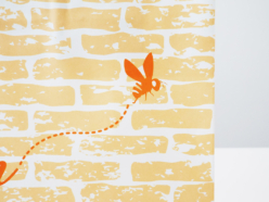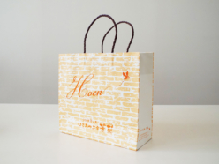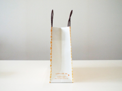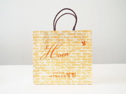 お店の雰囲気にぴったりで、レンガ柄が温かく、ミツバチのワンポイントが可愛らしくて、お客様にも好評です。オレンジ1色なのにとても表情があり、印象に残る仕上がりになりました。手に取った方の気持ちが明るくなるような紙袋です。